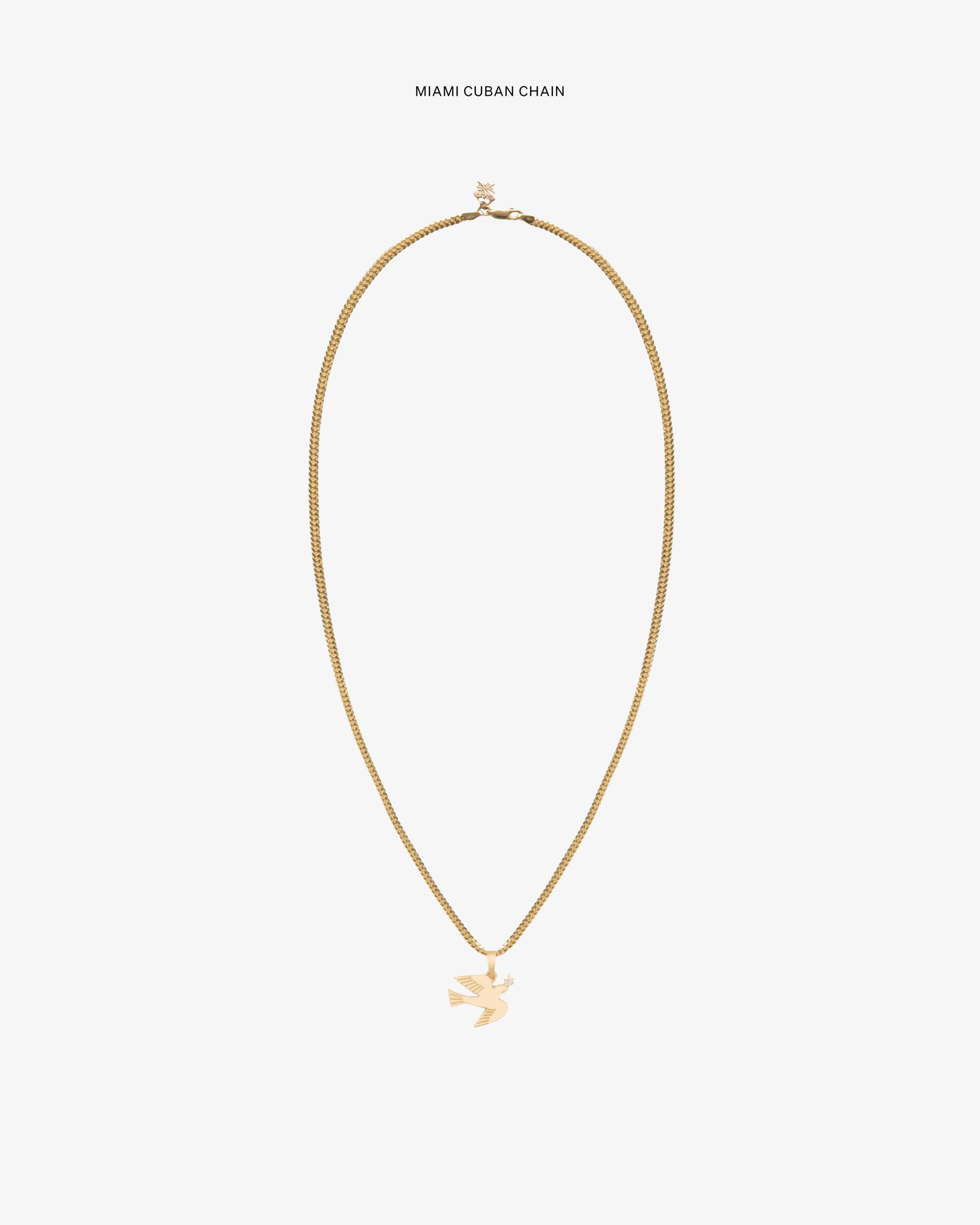 • Solid gold dove with diamond at branch