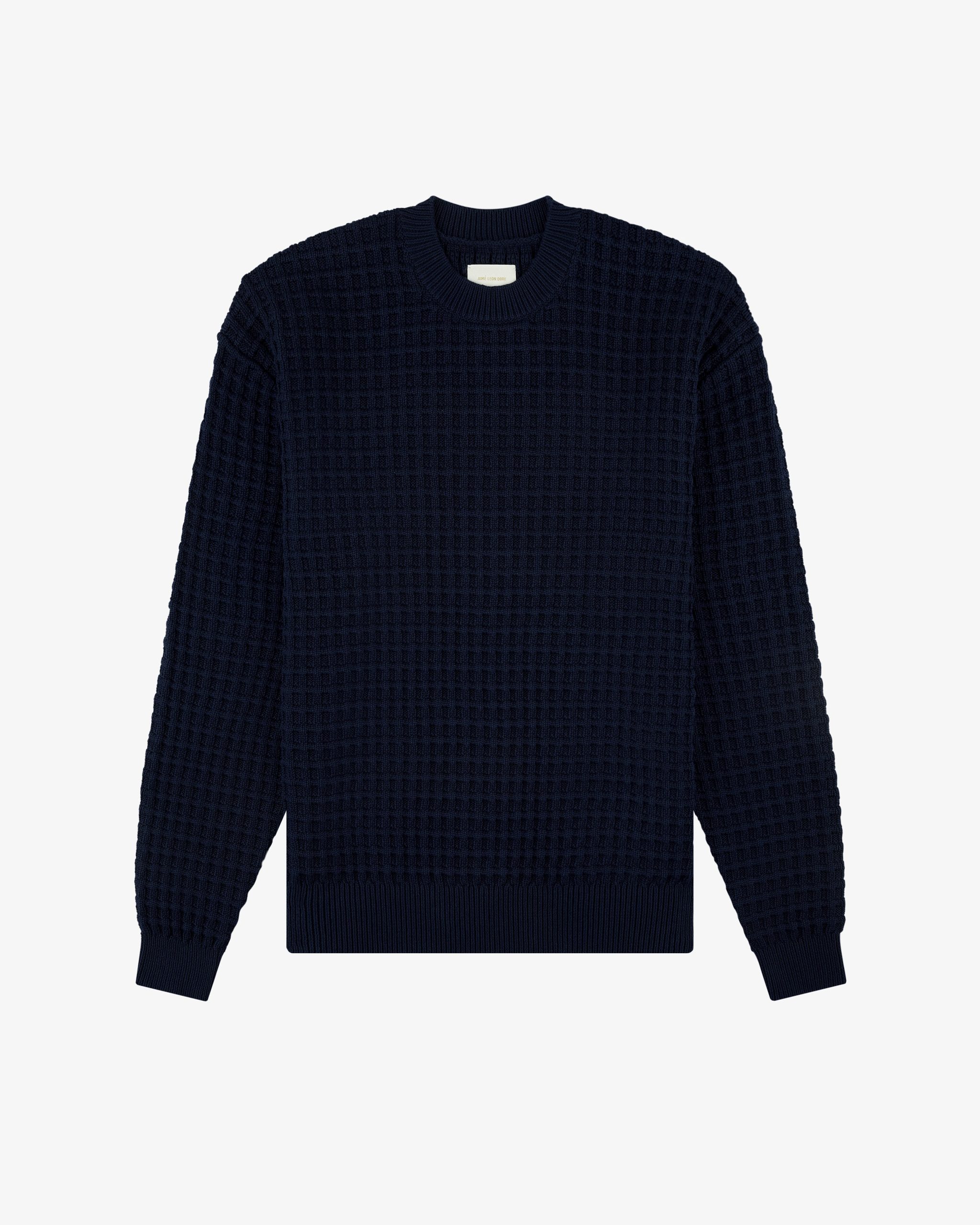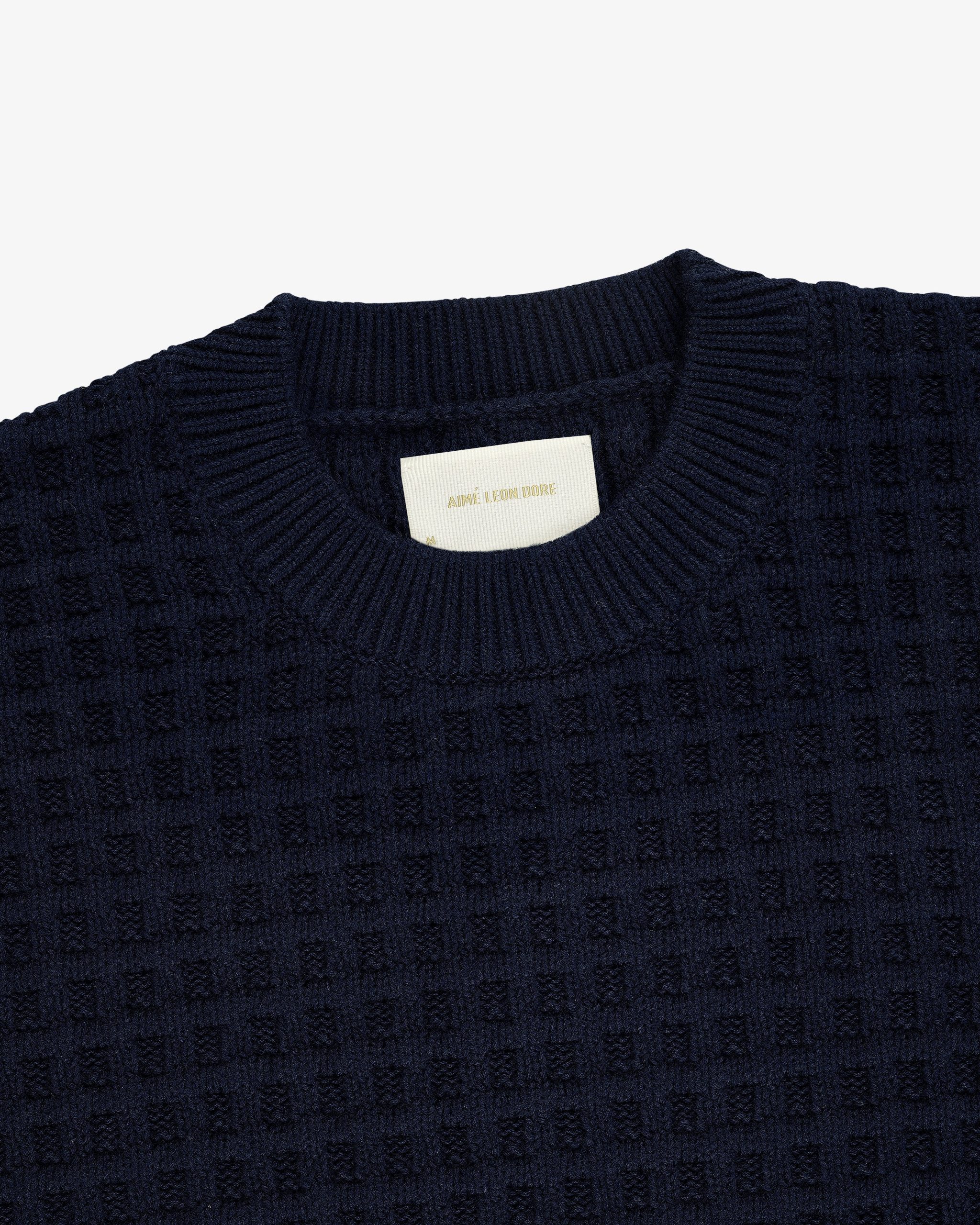 - • Navy crewneck sweater